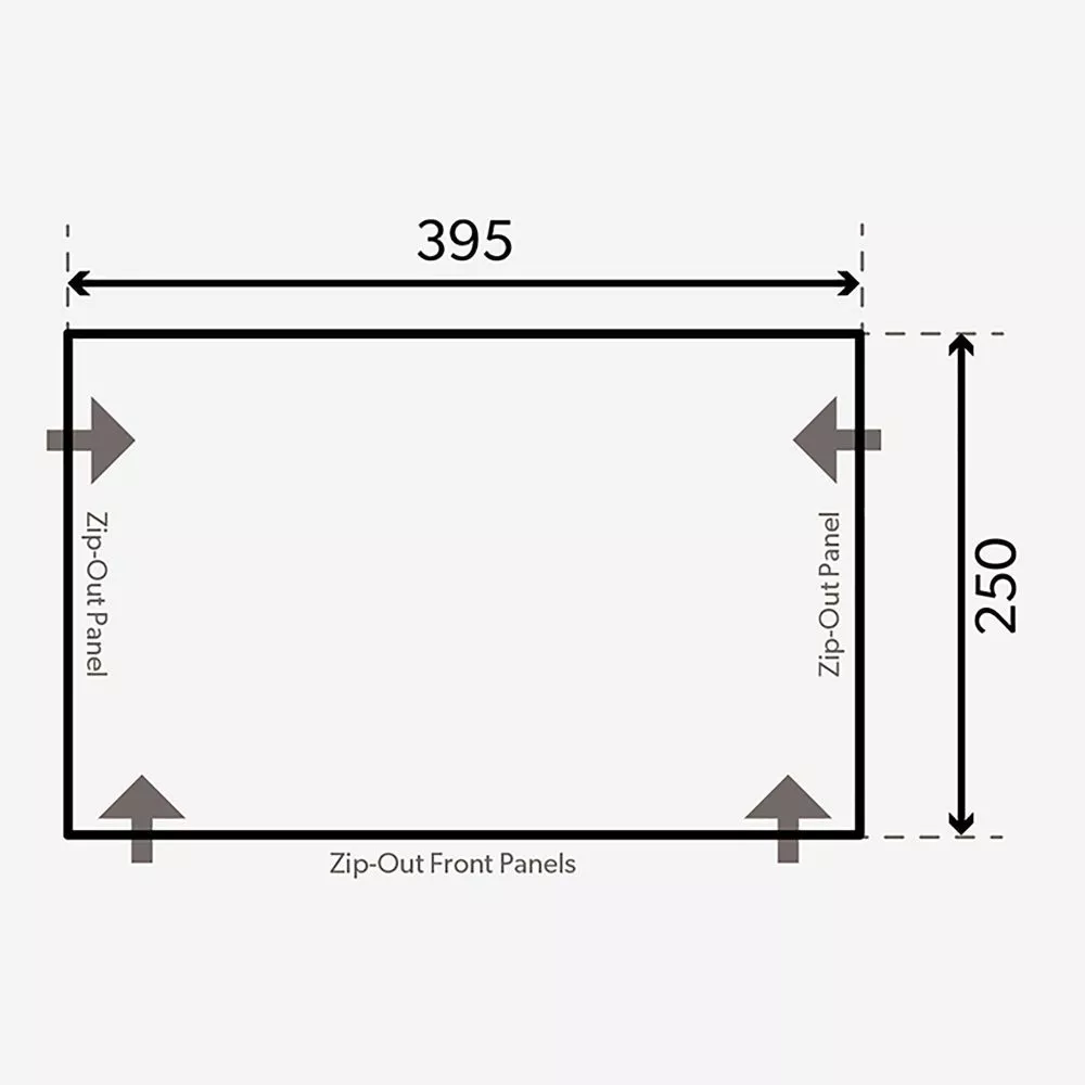 Das Dual-Pitch System mit doppelter Neigung sorgt dafür, dass Regenwasser und Wind noch besser abgeleitet wird. Es können durch die spezielle Dachform keine Wasserpfützen entstehen und das Dach hat keine Chance durchzuhängen. Ausserdem bietet es durch die spezielle Neigung noch mehr Kopffreiheit, um den Aufenthalt noch mehr geniessen zu können. Stelle eine gemütliche Essecke hin oder eine Spielecke für die Kinder, der Platz dafür ist auf jeden Fall garantiert.