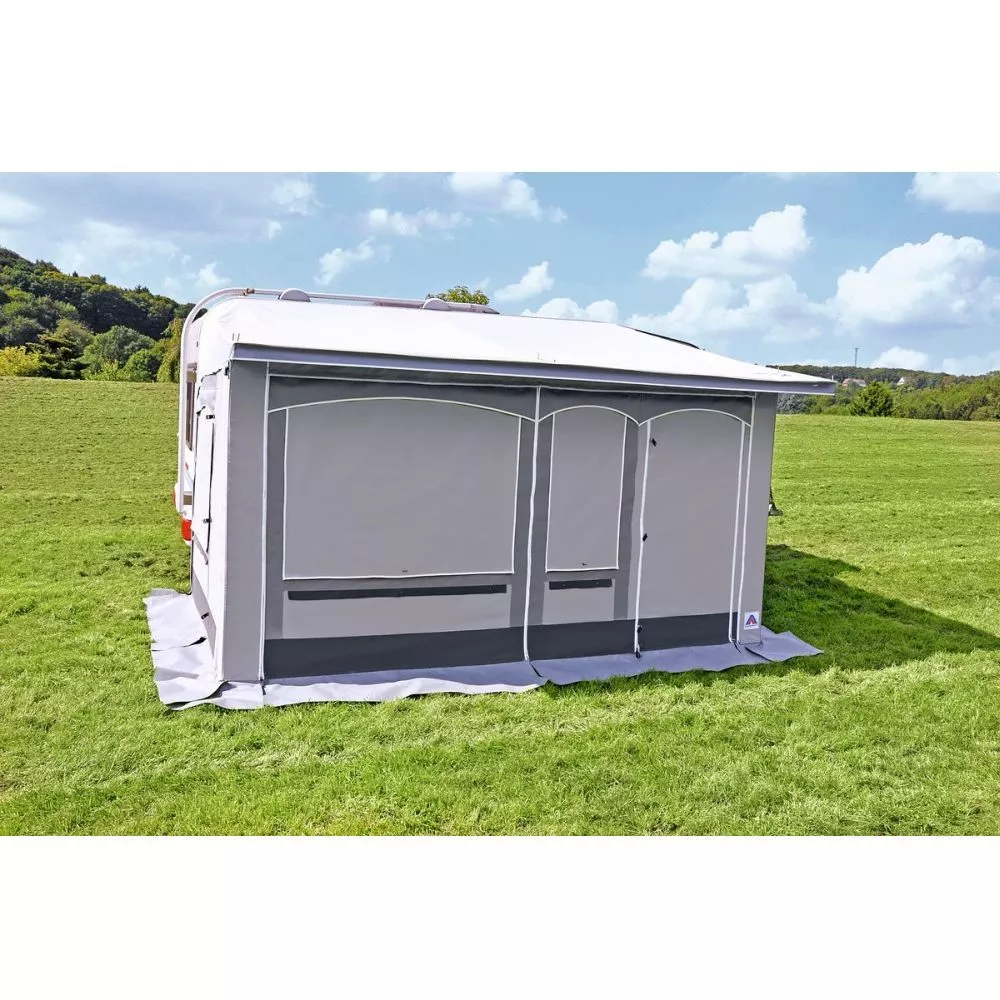 Das Hahn Vorzelt Wien ist ideal als Wintervorzelt bzw. Ganzjahresvorzelt geeignet. Es ist aus robustem PVC-Material hergestellt und daher sehr stabil.