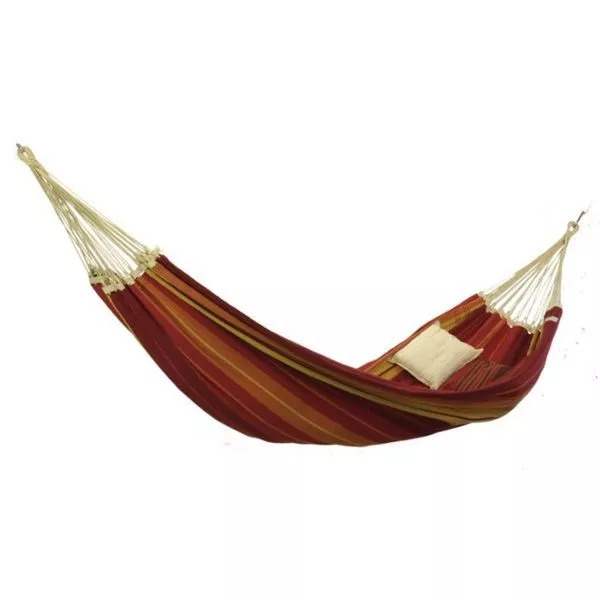 Wir präsentieren stolz: Die wahrscheinlich grösste Hängematte der Welt! Da staunt selbst der Brasilianer! Es wurden ca. 6.000 Baumwollfäden zu 6 m² extra fest gewebtem Hängemattenstoff verarbeitet. Damit sich diese riesige Liegefläche optimal aufspreizen kann, werden über 30 m besonders dicke Schnüre verwendet. Heraus kam Gigante, die perfekte Verbindung zwischen zwei Aufhängepunkten, in der problemlos mehrere Leute bequem liegen können. Gigantisch!